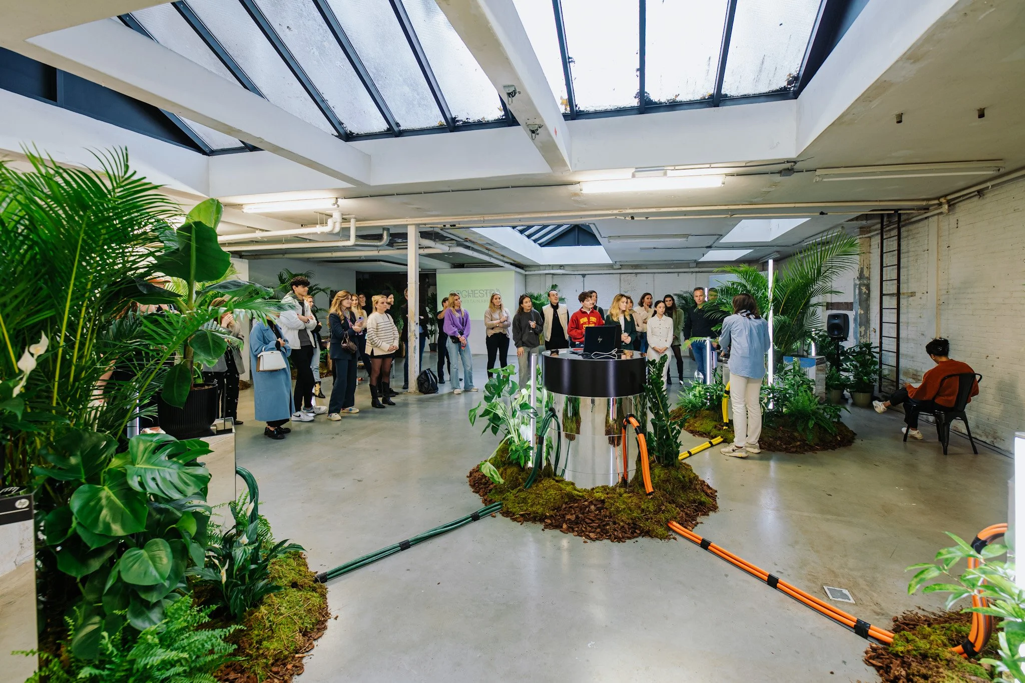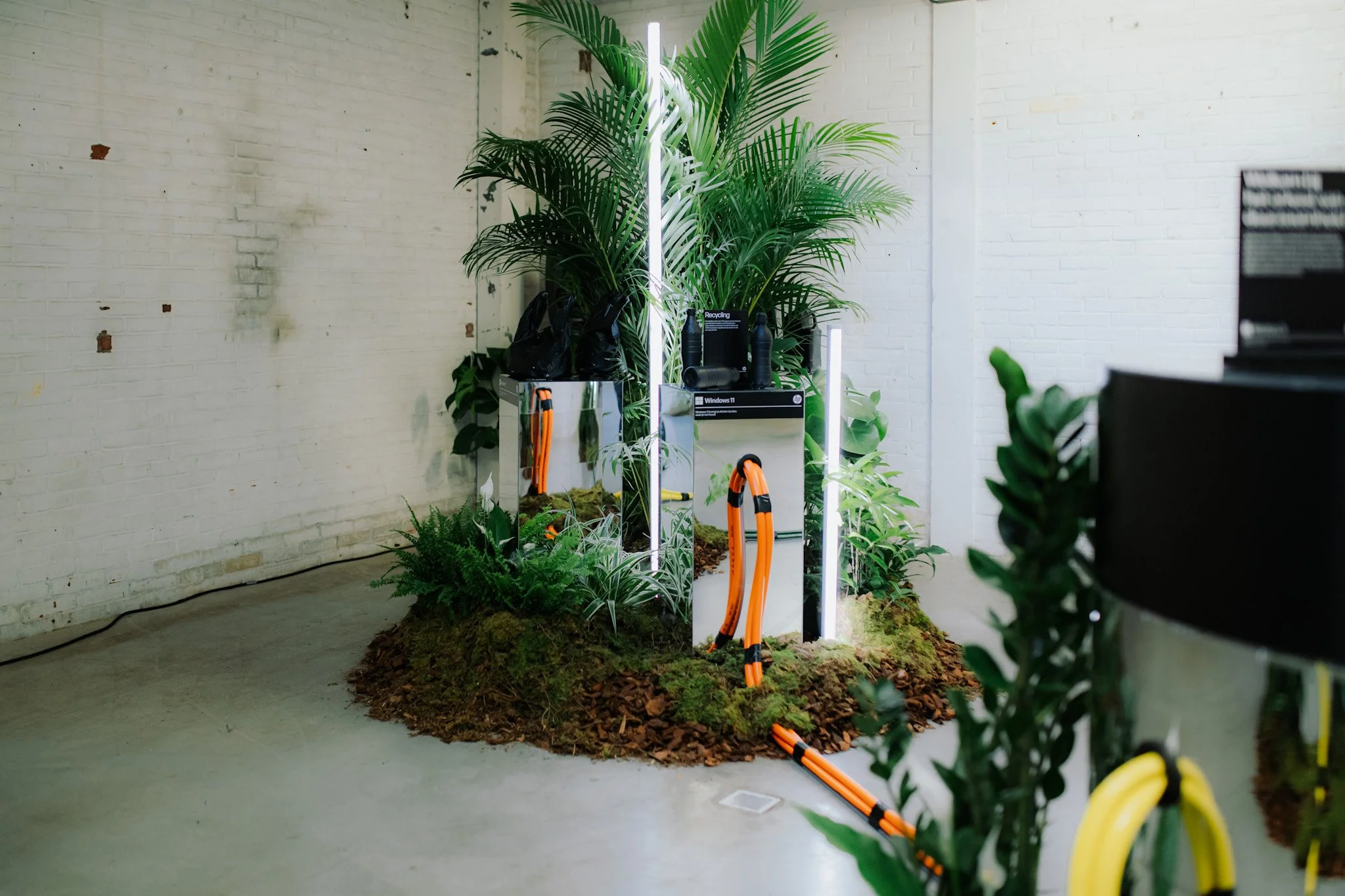 The natural world works in harmony, so to show how technology and nature can work together, we created an orchestra. My background in music production and experience with conductive instrumentation (Bare Conductive, Playtronica, Makey Makey, etc.) helped bring the Orchestra of Sustainability to life. When visitors touched plants, music played from hidden speakers. This tactile interaction created an immersive experience that showed how HP can work in harmony with nature.